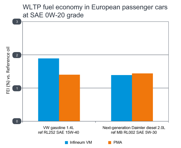 In addition, fuel economy benefits can be achieved in both passenger car and heavy-duty applications by using the latest VMs at lower treat rates than PMA.