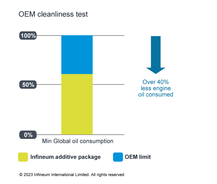 In addition, when running the Long Life Renault (LLR) in house test for cleanliness, oil consumption was reduced by almost 40% versus the OEM requirement.