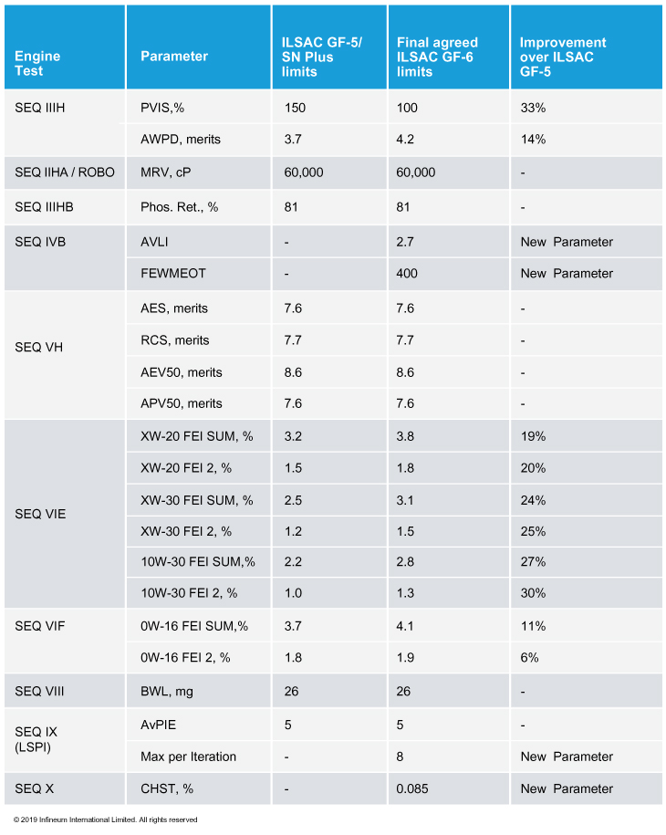 Base oil interchange and viscosity grade read across (BOI/VGRA) guidelines are critical to delivering ILSAC GF-6 products to the marketplace. Currently, BOI/VGRA for many of the tests are still in the balloting phase. However, it is expected that guidelines for all the tests, with the exception of the Sequence IVB, will be in place by May 2019.