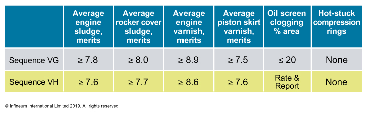 The Sequence VH limits are as defined for API SN, and ACEA says it will continuously review the situation to ensure that the limits are appropriate for European vehicles and lubricants.