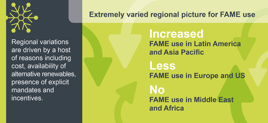 However, the trends in the use of FAME vary widely on a regional basis and are generally driven by local mandates, incentives, cost and availability.