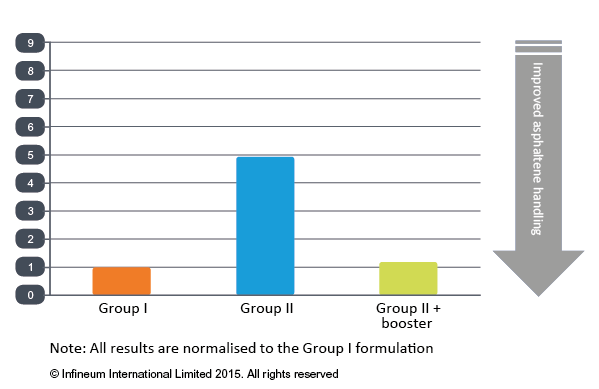 The new additive package means that Group II TPEO formulations can deliver the same level of asphaltene dispersancy as those formulated in Group I, while bringing additional benefits derived from the higher quality base stock.